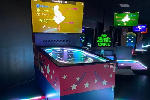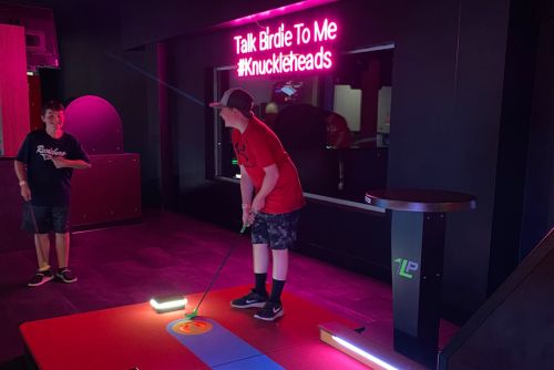 Step into the future of mini golf with Puttheads at Knuckleheads Trampoline and Amusement Park! We’re revolutionizing this timeless game by infusing it with interactive, challenge-based gameplay. By seamlessly combining the cherished nostalgia of traditional mini golf with cutting-edge technology, we present an unparalleled social experience that is sure to leave a lasting impression. Play a quick round for $7 or purchase one of our ride wristbands to play all day. Stop in to check out this unique, 9-hole course, today!